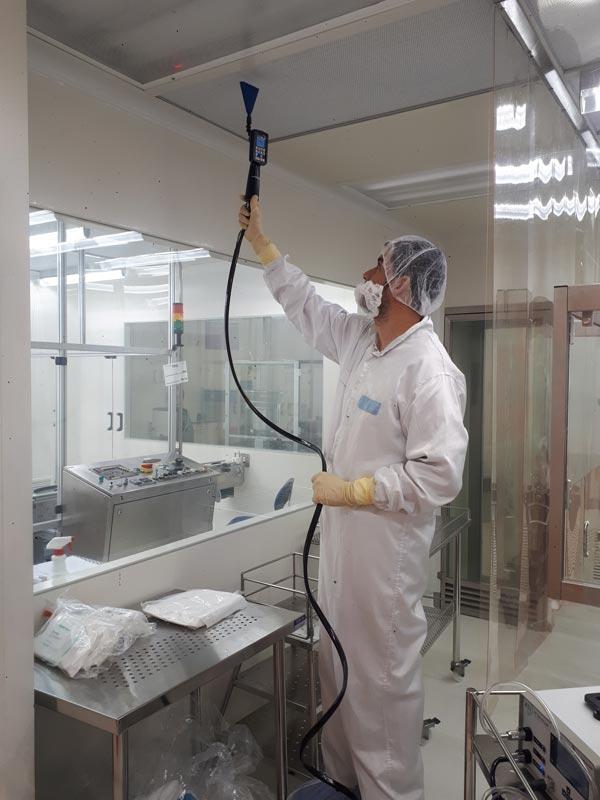 מטרת הבדיקה: למדוד את מהירות זרימת האויר, דרך מסננים תקרתיים בחדר הנקי בהתאם לסוג הזרימה בחדר על מנת לקבוע את תקינות הזרימה (לחדרים עם זרימה חד-כיוונית), או לחשב כמות החלפות אוויר בחדרים הנקיים ולהשוות לדרישות התכנון/ לקוח/ המלצות התקנים, לפי רמת ניקיון מוגדרת בחדר הנקי.